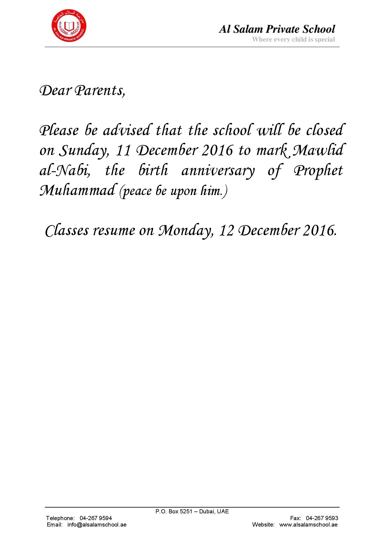 Tel: +971 4 267 9594     Fax: +971 4 267 9593     info@alsalamschool.ae