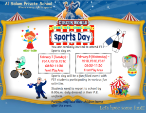 Year 4-12 students (BOYS) Sports Day- (Home study day for Years 4 -6 Girls) Due to weather conditions, we will conduct the sports day activities, scheduled today- 16 February, in the school. Please note after the event is finished, parents may collect their children (at 12:00 p.m) or at the end of the regular school day (at 2:00 p.m.). Students who go by school bus will leave the school at the end of the regular school day.